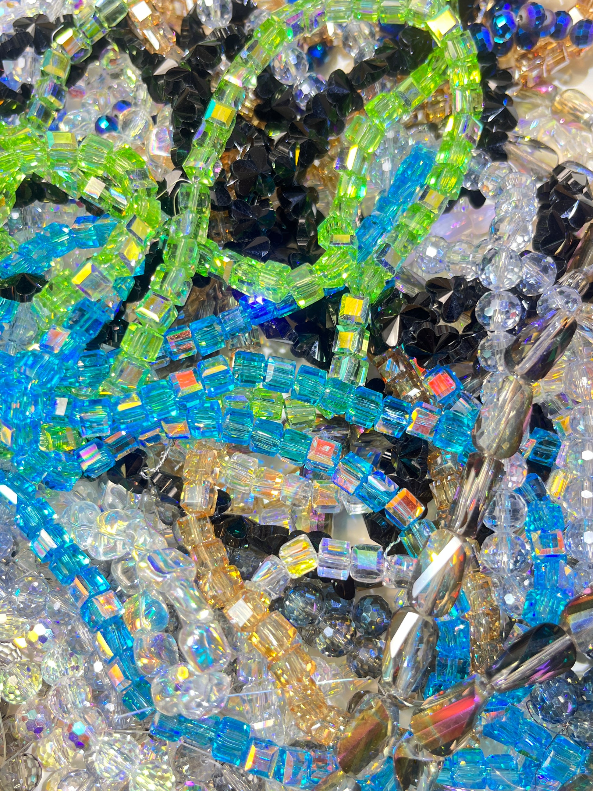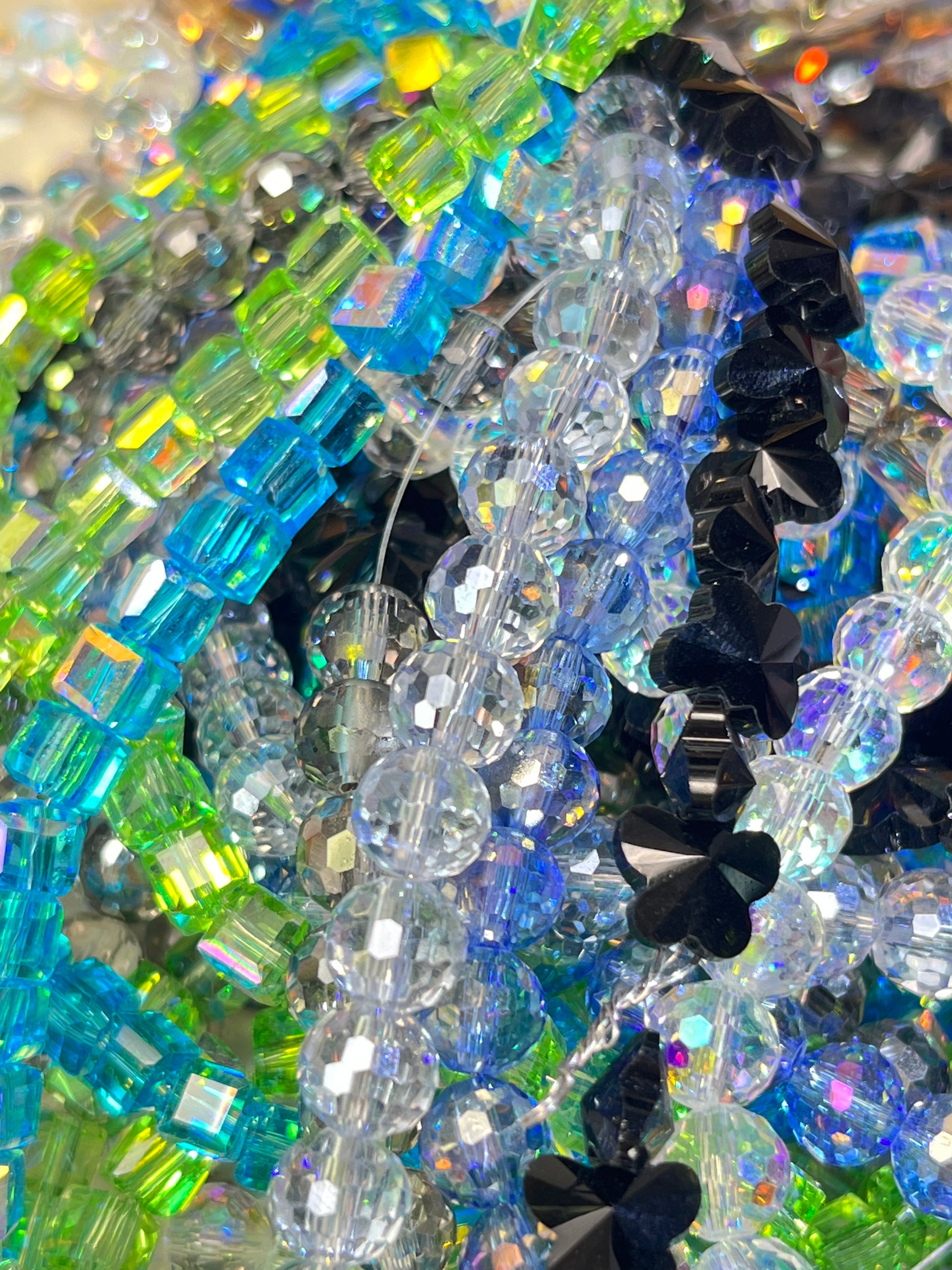 Each lucky bag contains different crystal beads that can be used to make bracelets, necklaces, phone charms, and more!